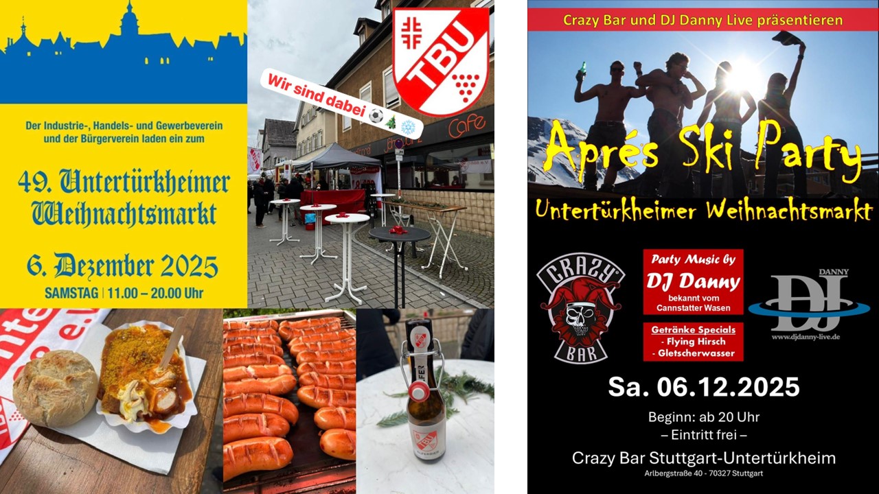 Nach dem Weihnachtsmarkt heizt euch unser DJ Danny bei der Après Ski Party in der Crazy Bar in Stuttgart-Untertürkheim richtig ein. Also kommt alle vorbei und lasst es krachen.