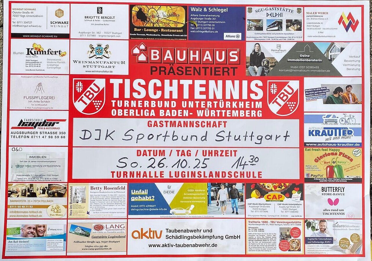 Am Samstag, 11.10. um 17 Uhr empfängt der TBU die bislang ungeschlagene DJK Offenburg in der Sporthalle der Luginslandschule. Am 26.10. um 10:30 Uhr steht das Derby gegen den Stadtrivalen DJK Sportbund auf dem Spielplan. Am 19.11. stellt sich der badische Vertreter TTV Ettlingen in Untertürkheim vor und am 30.11. ist der TTC Odenheim zu Gast.